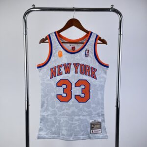 Camiseta Regata NBA New York Knicks BAPE 33 Patrick Ewing Mitchell & Ness Branca 1991/92