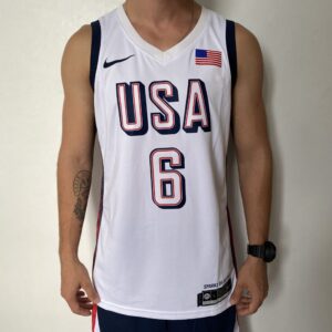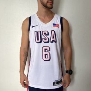 Camiseta Regata Basquete USA EUA Seleção Estados Unidos Olimpíadas Paris 2024 LeBron James 6 Branca Nike