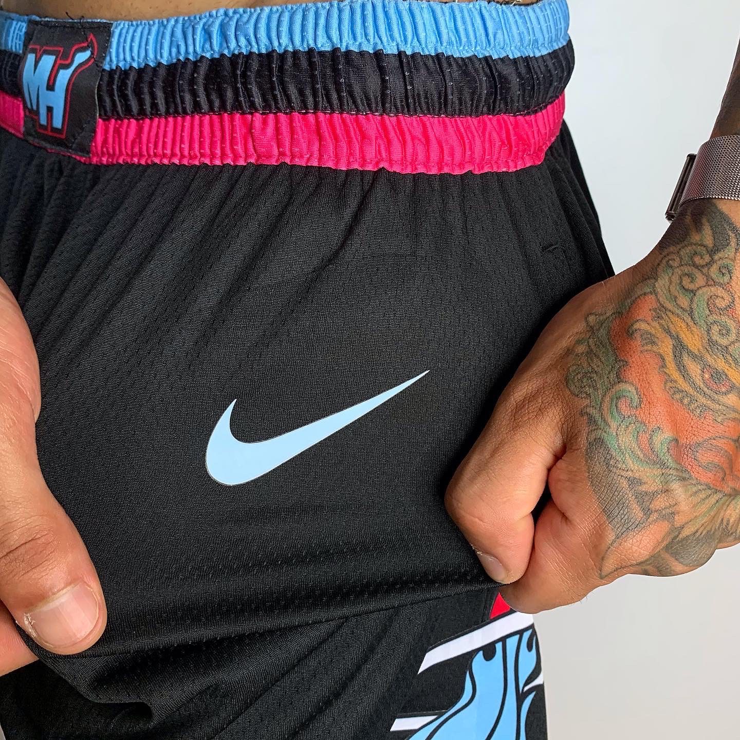 Short Bermuda Basquete NBA Miami Heat Preta Rosa e Azul City Edition Nike
