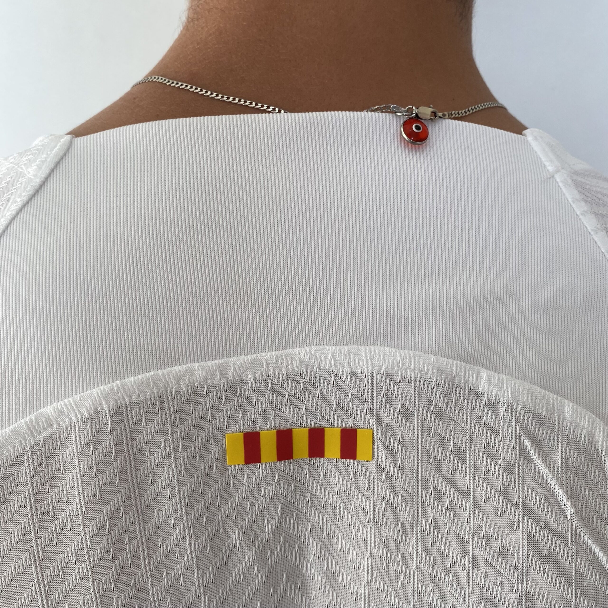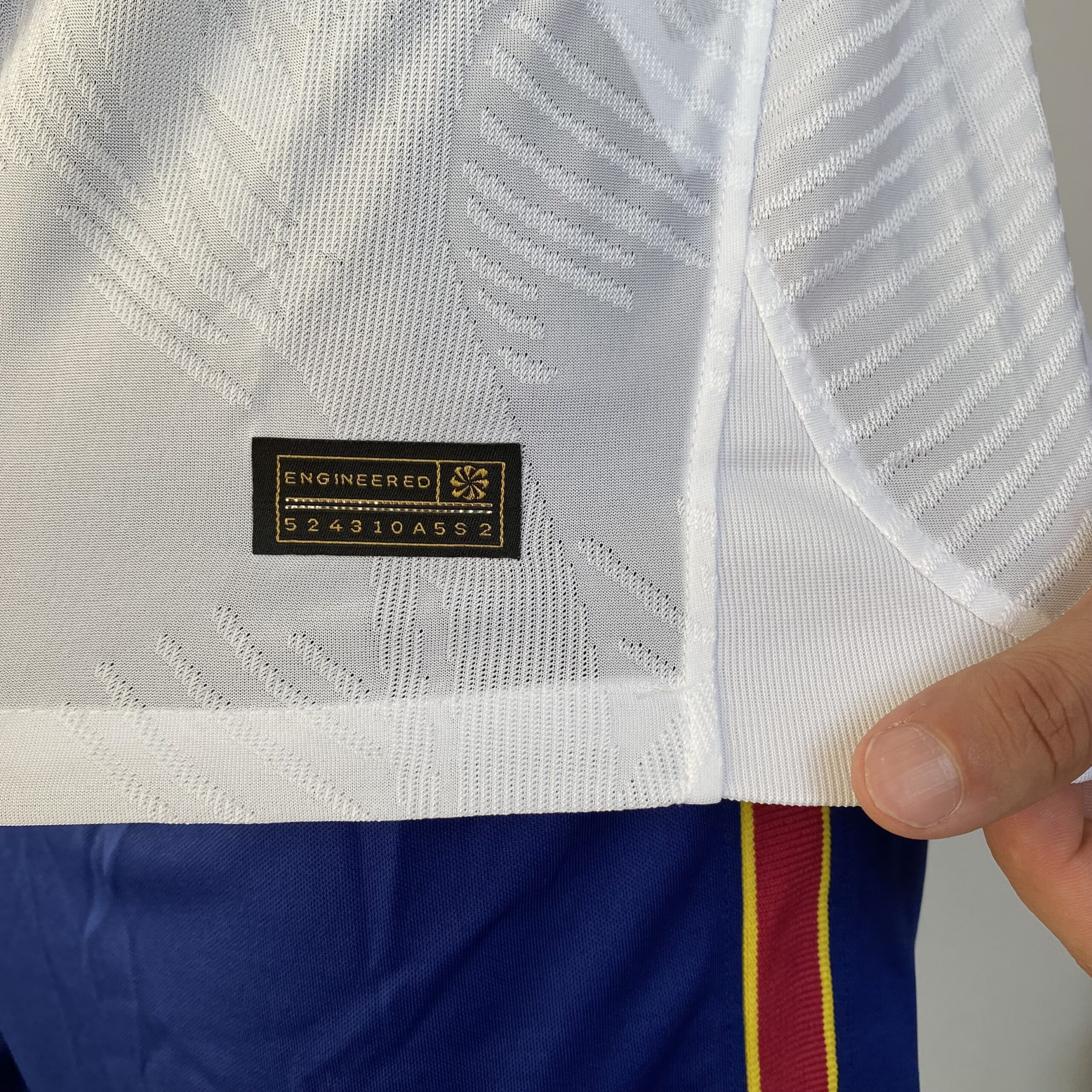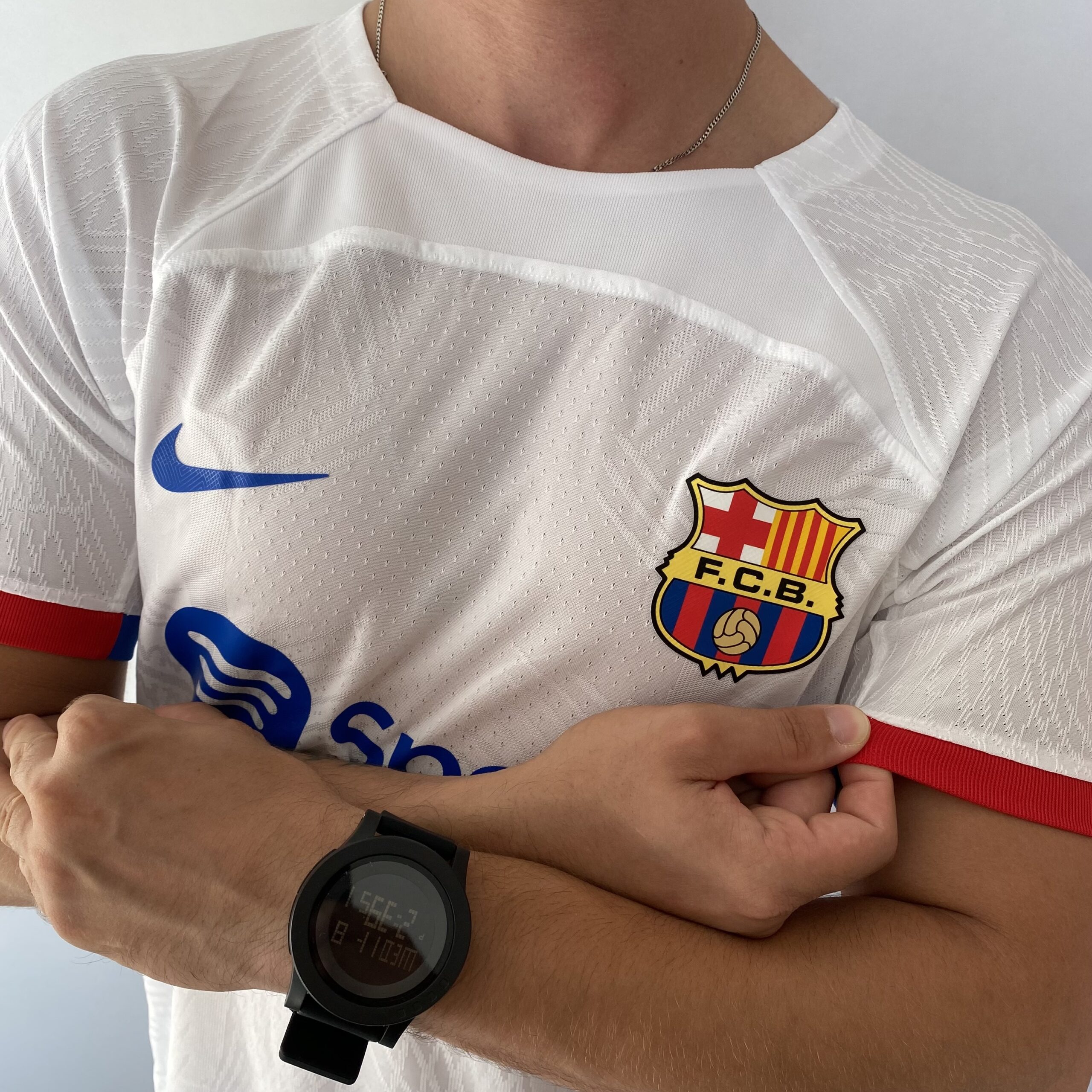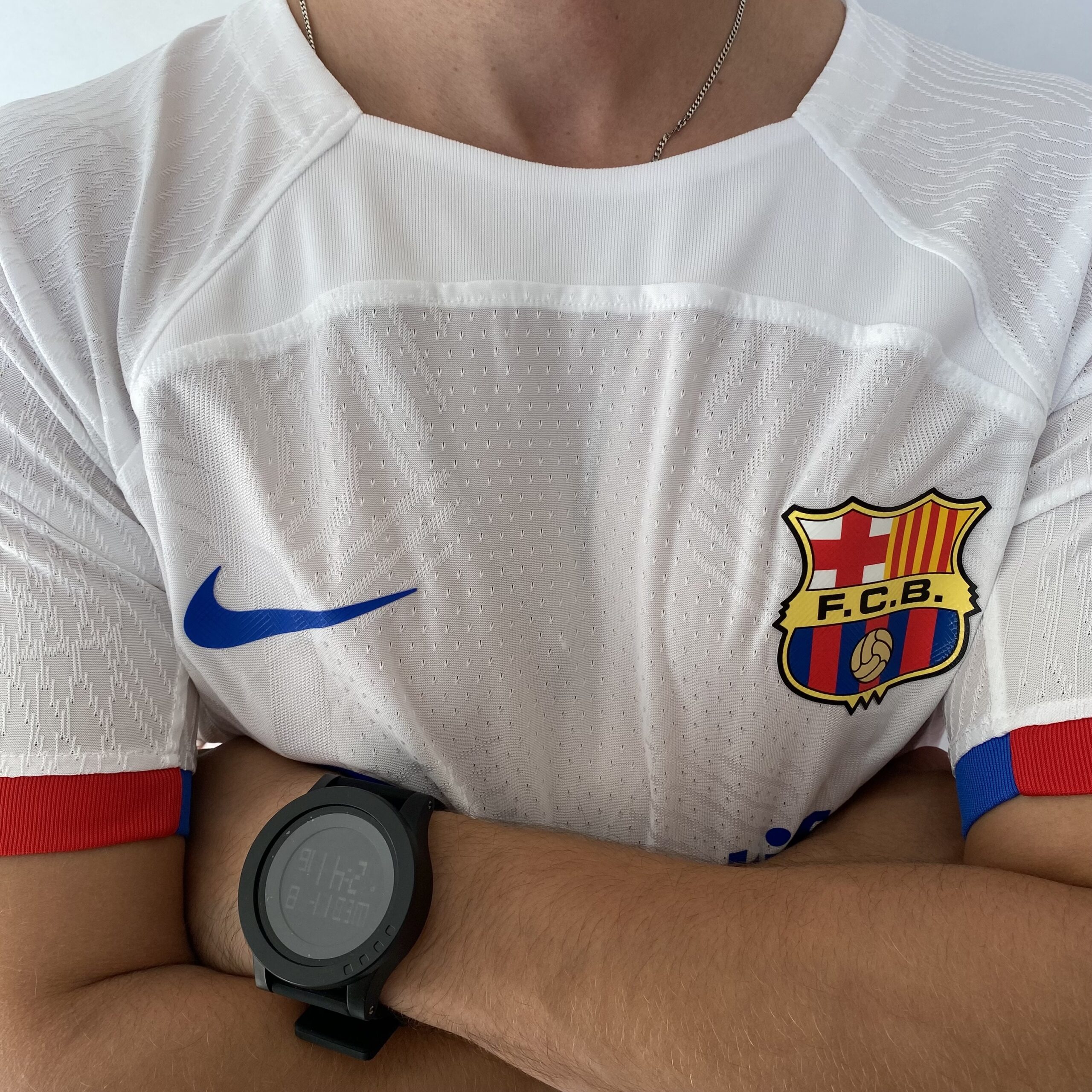 A nova camisa reserva do FC Barcelona é branca, uma cor que ultimamente não é muito comum nos uniformes do clube, principalmente por ser a principal cor de seu rival, o Real Madrid, porém já foi muito usada no passado e remete à época em que Johan Cruyff, um dos principais jogadores da história do Barça, defendeu o clube nos anos 70. O manto é predominantemente branco e traz como base, o template lançado pela Nike na Copa do Mundo. As mangas são brancas com os punhos trazendo a parte superior vermelha e a inferior azul.