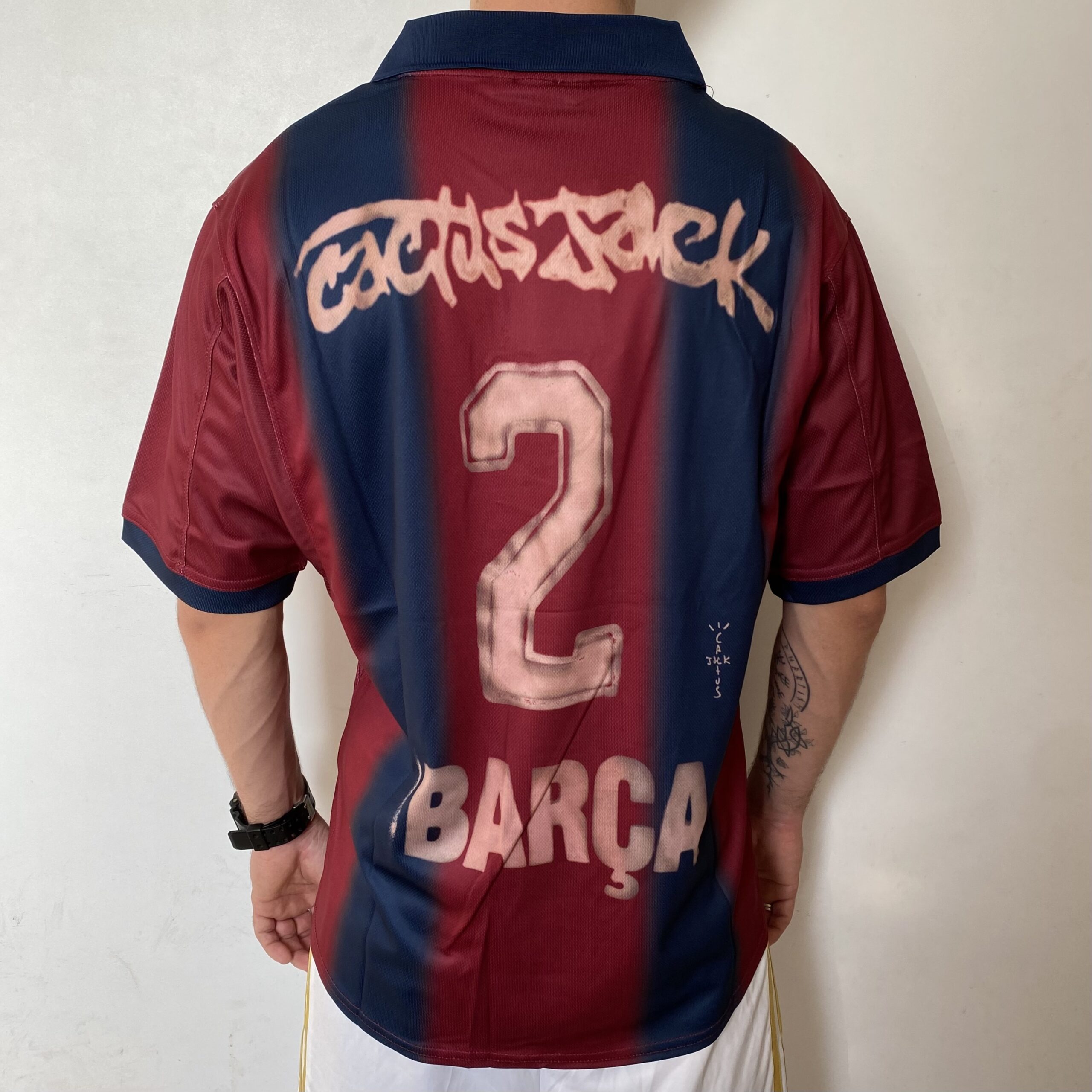 Camisa Barcelona Travis Scott Skeleton Oversized Retrô – 2000/2001 – Azul Grená
