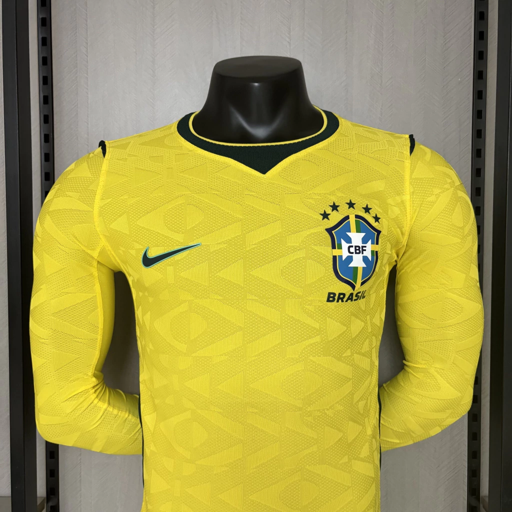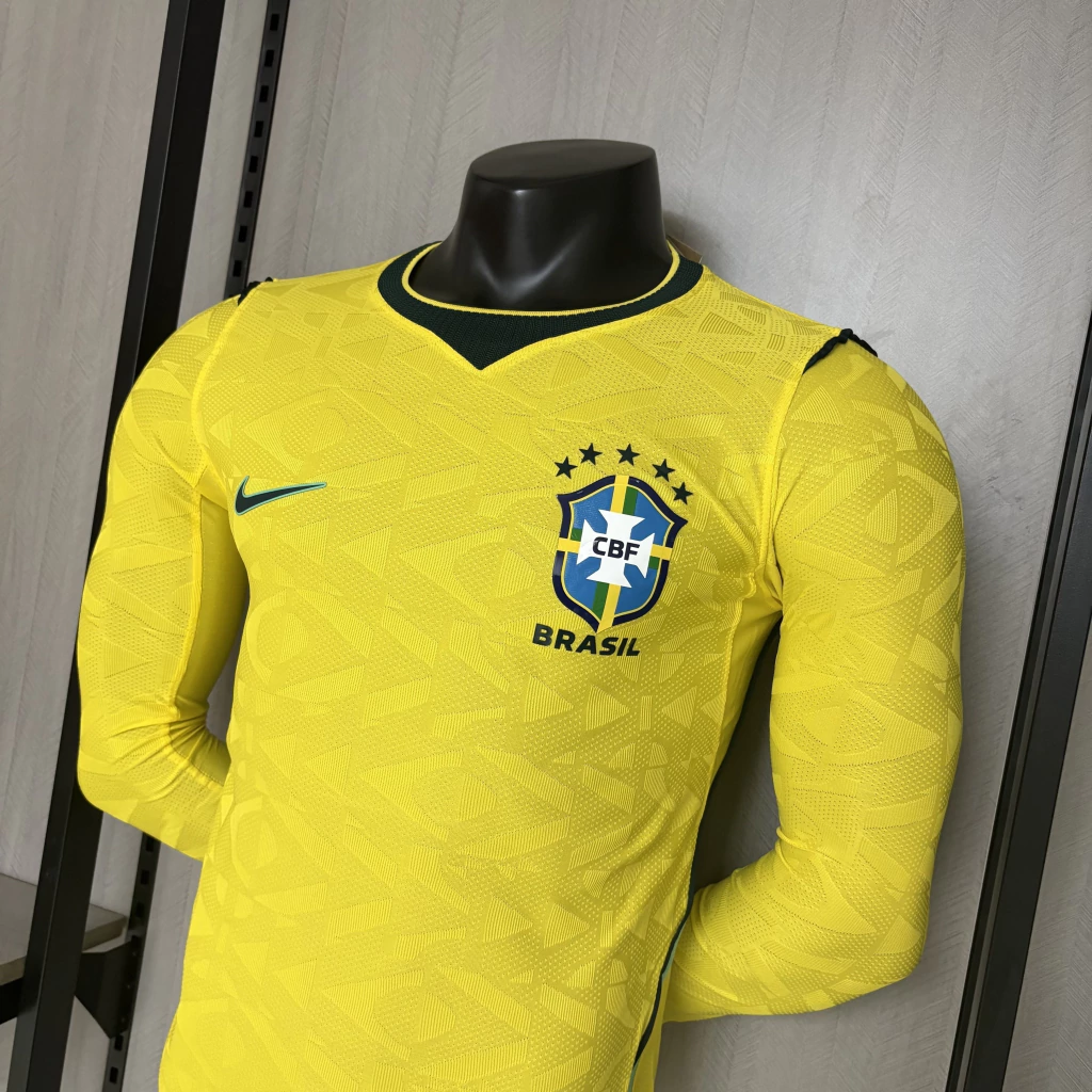 Camisa Brasil Seleção Brasileira Home Jogador Manga Longa Copa do Mundo 2026 Amarela Nike