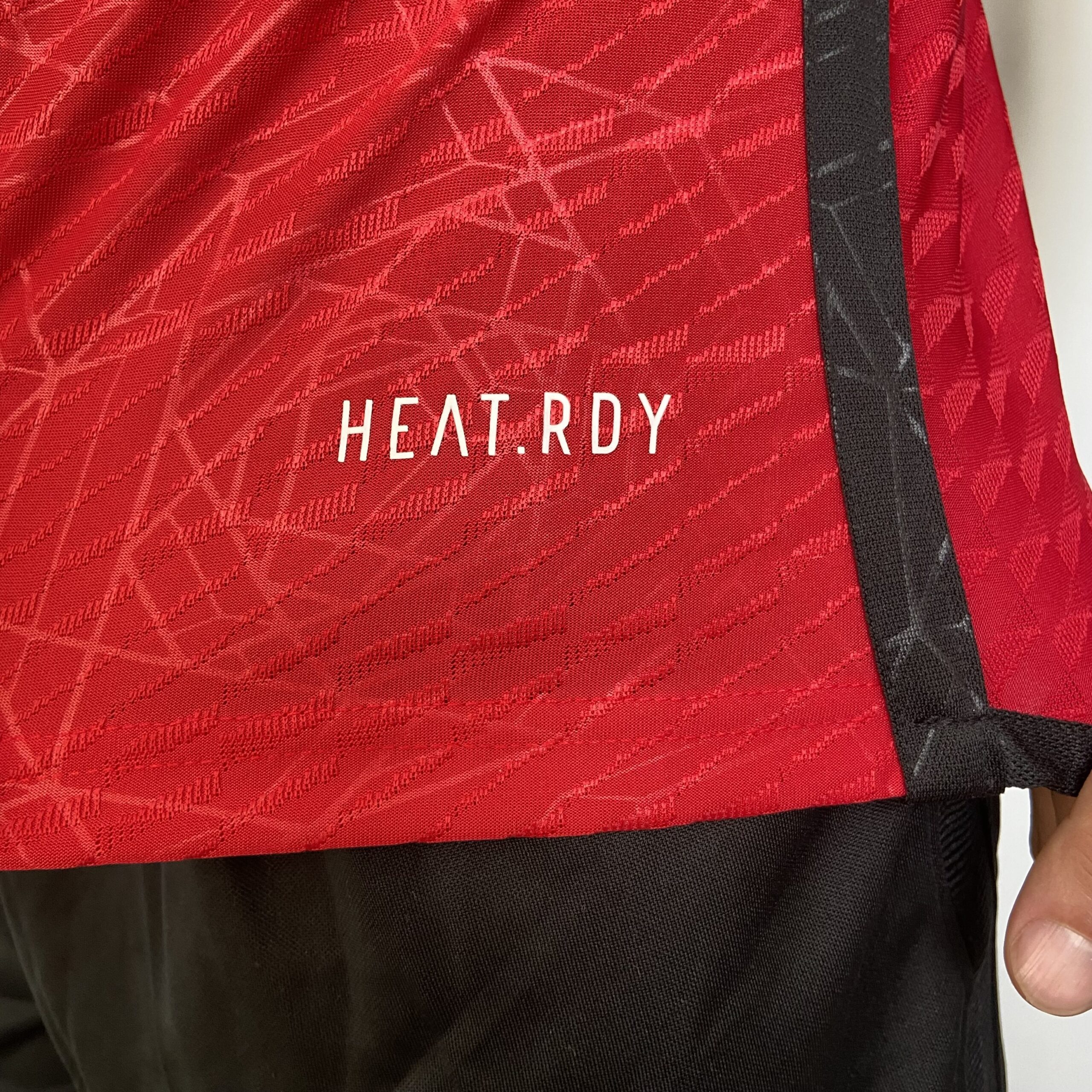 A camisa titular do Manchester United para a temporada, segundo o próprio time, homenageia a icônica rosa vermelha da cidade (Lancashire) e se inspira na ponte sobre o rio Irwell, que conecta Manchester e Salford, “um símbolo da força da cidade e seu profundo impacto no mundo durante a revolução industrial”. Ela é vermelha e tem como destaque um padrão gráfico no corpo com diversos riscos que formam rosas. O preto é a cor secundária, ao invés do branco, e é visto na gola junto à frisos em branco e vermelho, além das três listras que percorrem os ombros e faixas laterais, que se juntam na barra traseira e dorsais.