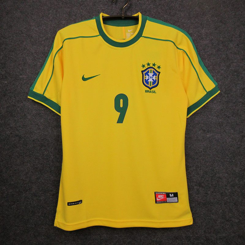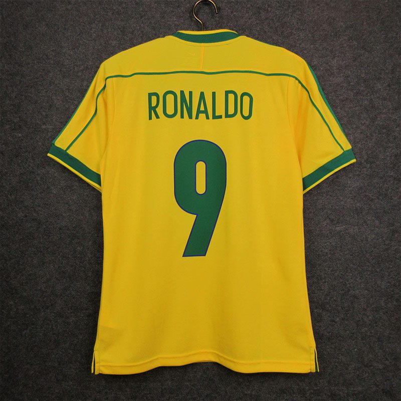 Camisa Retrô Clássica Seleção Brasileira Brasil – Ronaldo 9 – Nike Masculina – Amarela – 1998