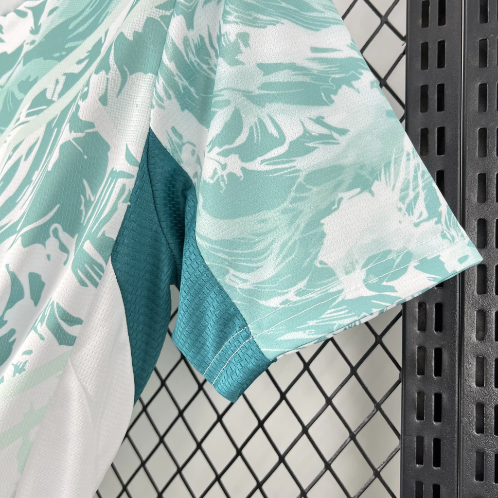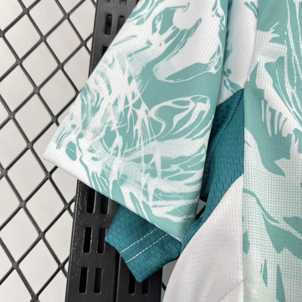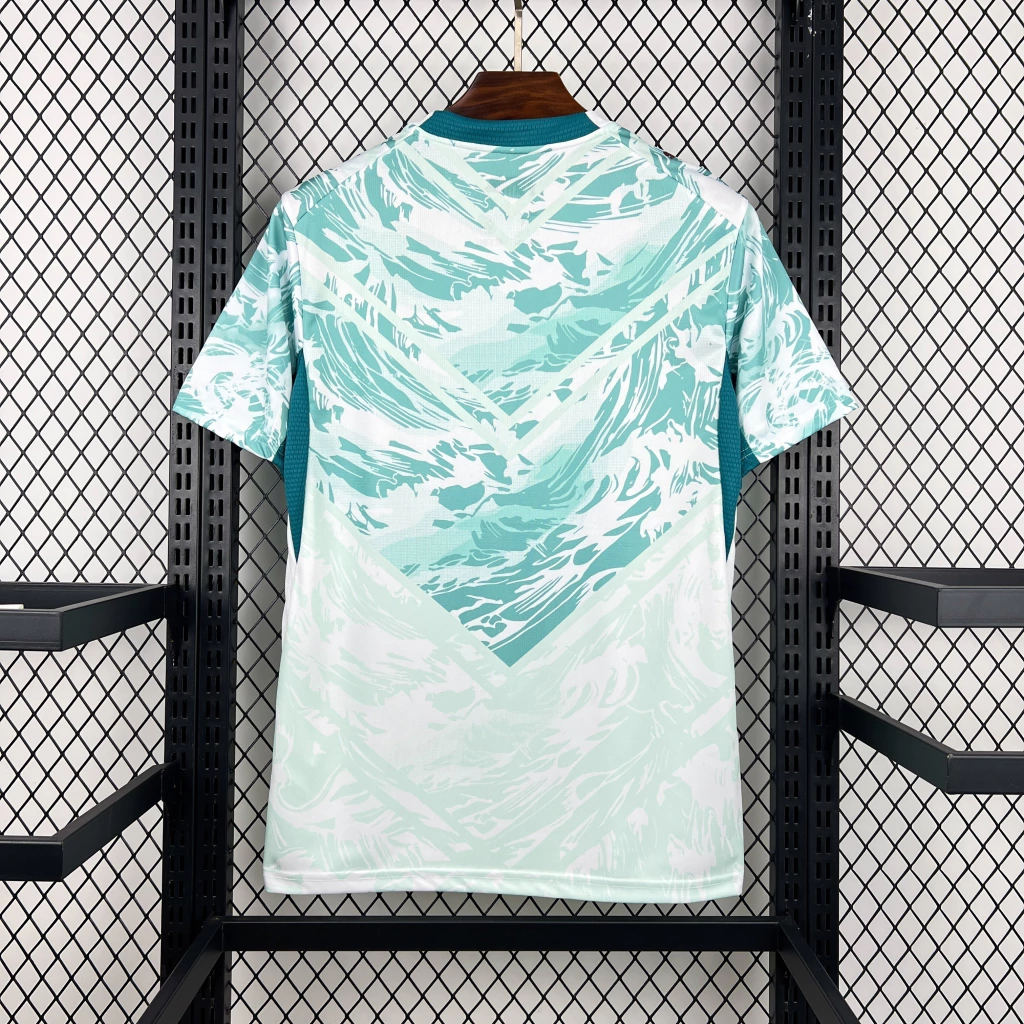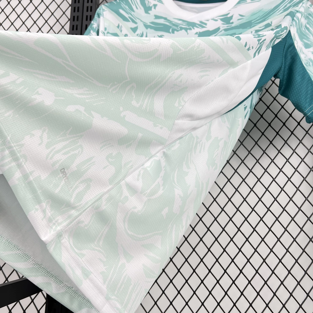A nova camisa reserva de Portugal terá a cor verde água predominante com um gráfico na região superior, cortado por cortes em V na região da barriga e no peito, que mesclam tons diferentes da cor, se misturando ao branco. Há duas linhas de especulações sobre a inspiração do manto. Segundo o Footy Headlines, seria o universo dos super-heróis, que conectam os fãs e trazem uma declaração de força, união e ambição ilimitada. Já a imprensa portuguesa acredita que assim como no uniforme titular, a inspiração será o mar e as navegações portuguesas.