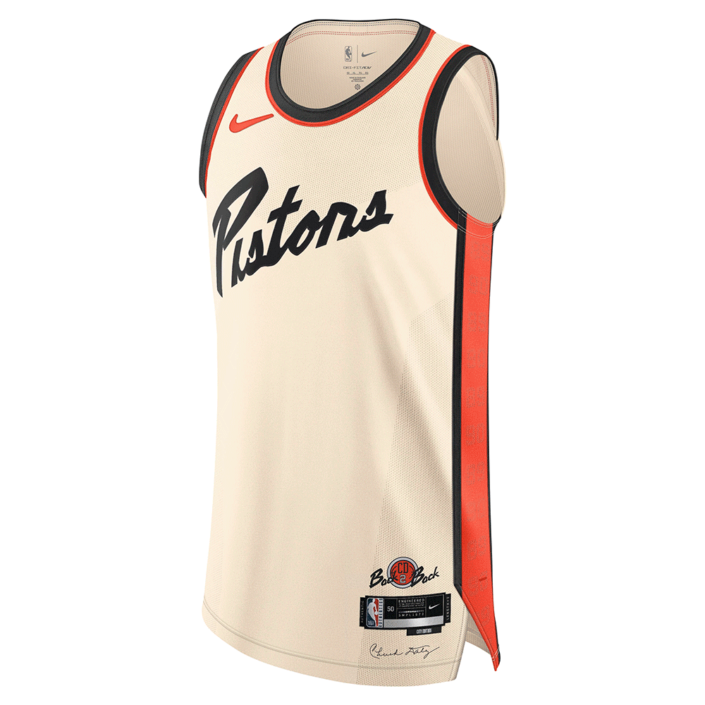 O design dos Pistons também é a versão caseira do conjunto do City do ano passado, que foi inspirado nas camisas “Detroit Bad Boys” , que explodiram em popularidade quando eles ganharam títulos consecutivos em 1988-89 e 1989-90.