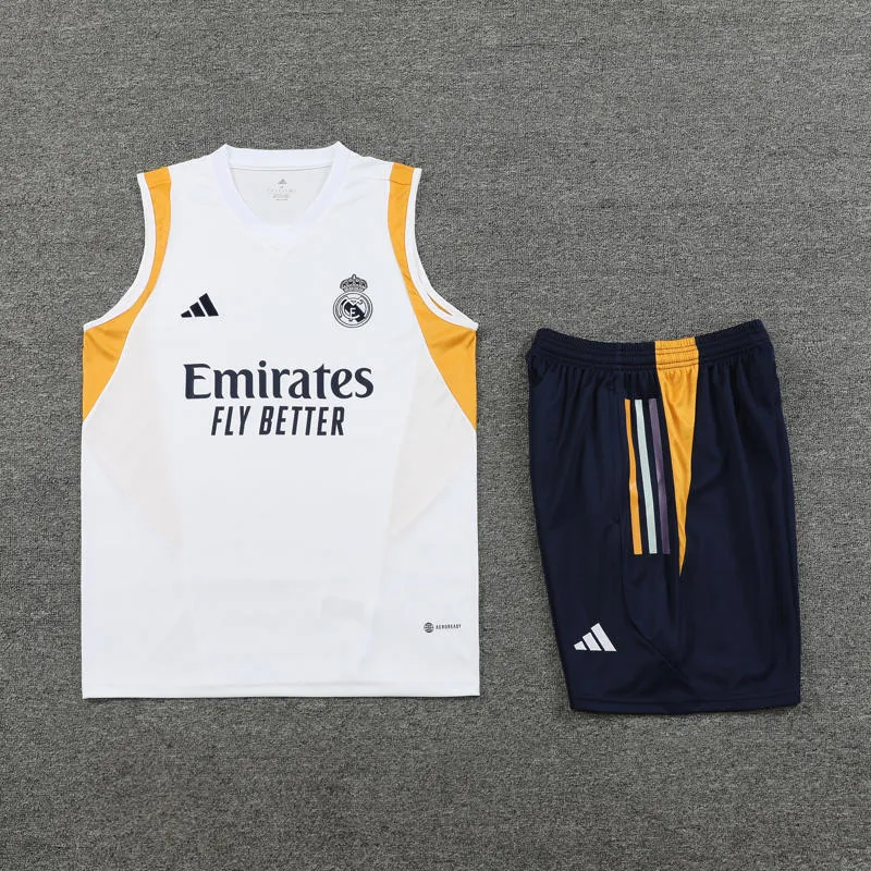 Kit Regata e Calção Real Madrid Versão Torcedor 24/2025 Branco Adidas