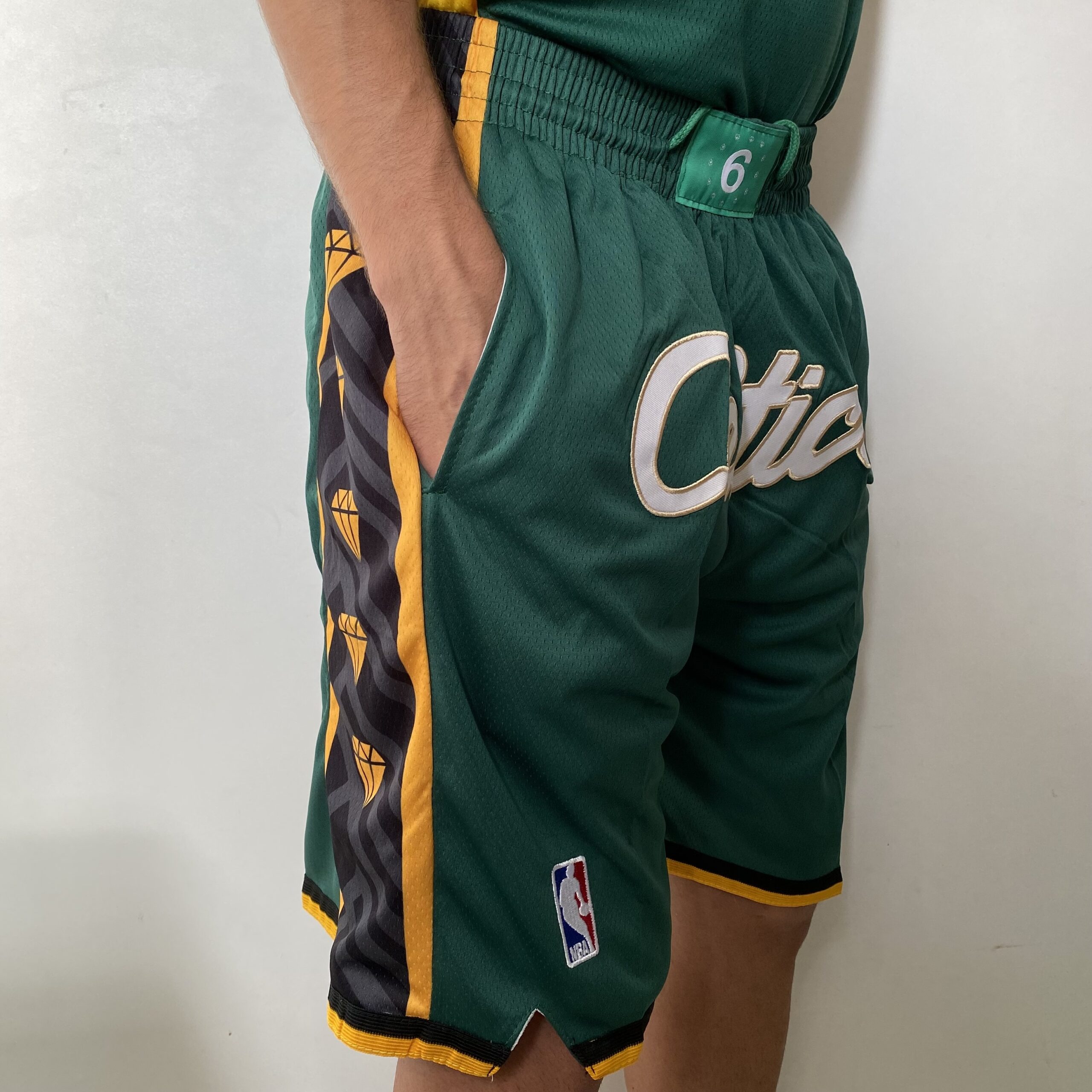 Short Bermuda Basquete NBA Swingman Boston Celtics City Edition Verde Dourada – Versão Especial – Bill Russell 2023